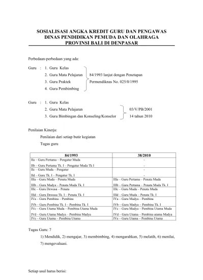 tahun pelajaran 2005/2006 semester genap sk no. 2 nip/nomor seri karpeg : Besaran angka kredit untuk publikasi karya tulis hasil penelitian pada bidang pendidikan di sekolah/ madrasahnya seperti pada tabel. Penilaian dan penetapan angka kredit, kenaikan pangkat/jabatan, pembebasan sementara, pengangkatan kembali, dan pemberhentian dari jabatan guru sesuai dengan peraturan menteri negara pendayagunaan aparatur negara dan reformasi birokrasi nomor 16 tahun 2009tentang jabatan fungsional guru dan angka kreditnya dan peraturan bersama menteri. Panduan kerja tenaga administrasi sekolah.